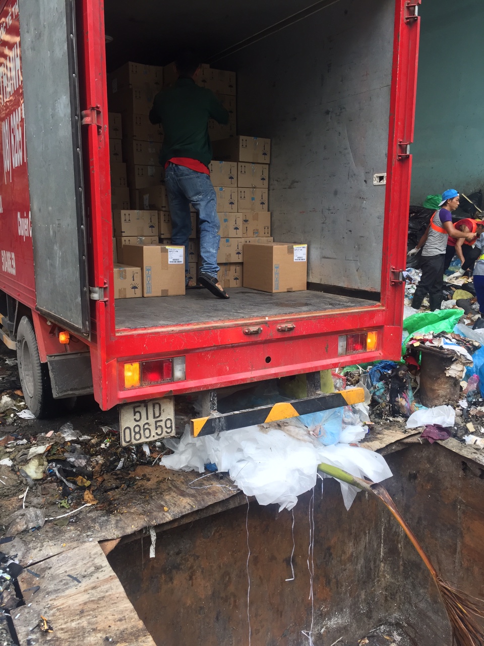 Quá trình thu gom và vận chuyển lên xe chuyên dụng: