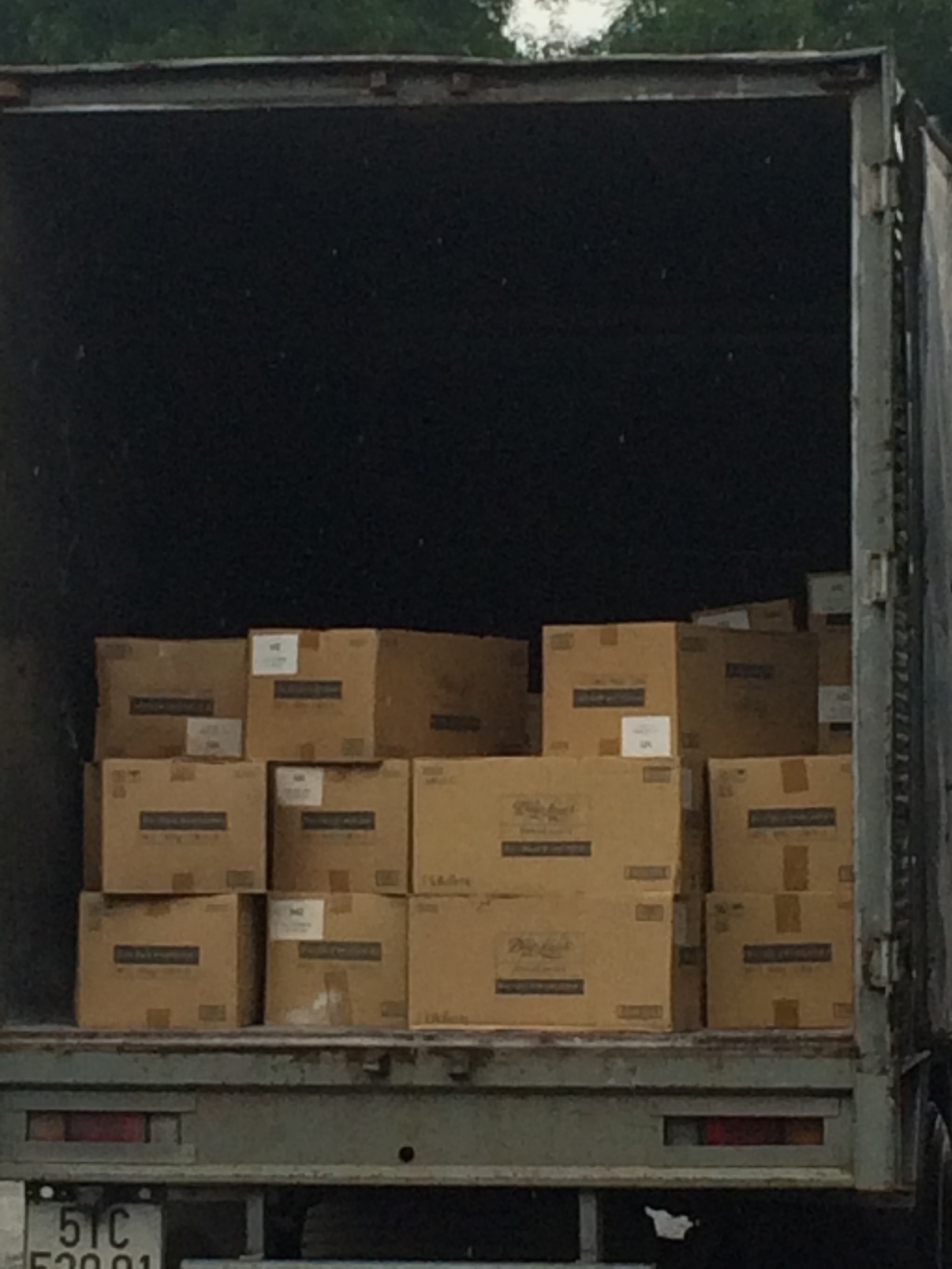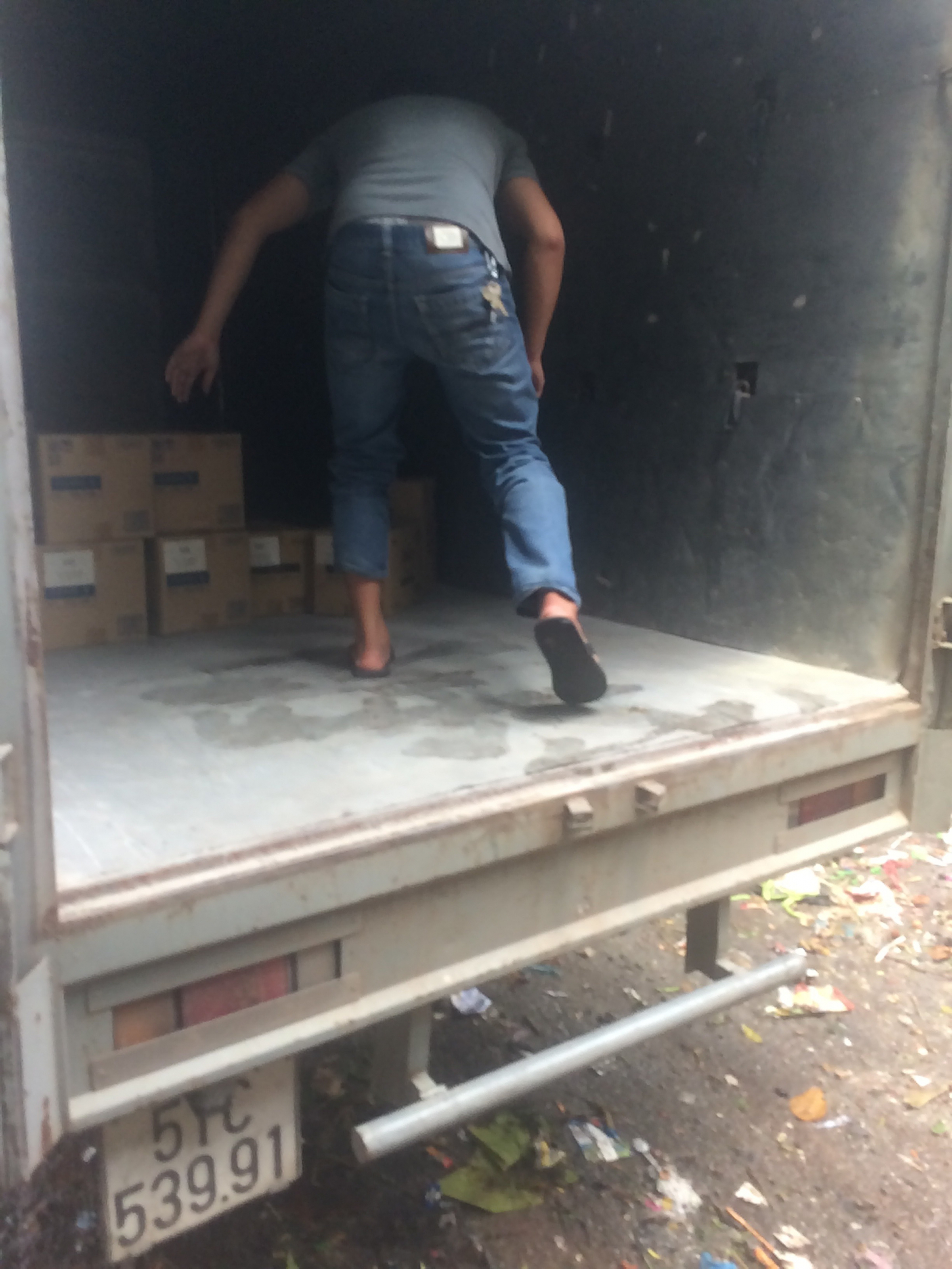 Vào lúc 8h30 , ngày 22/09/2017, Công ty TNHH môi trường MH bố trí phương tiện và nhân công đến địa điểm lưu chưa lô hàng mỹ phẩm hết hạn sử dụng tiến hành thu gom, đưa lên xe chuyên dụng.